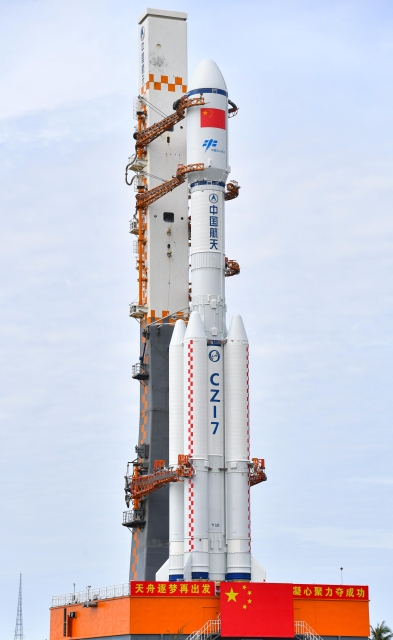 天舟九号与长征七号遥十运载火箭组合体垂直转运至发射区