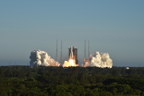 长征五号B运载火箭在文昌航天发射场点火升空(李明/摄)