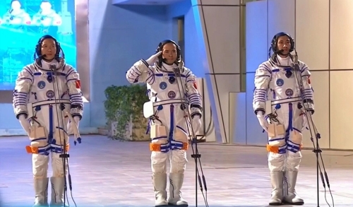 神舟二十一号载人飞行任务航天员乘组出征仪式在酒泉卫星发射中心举行