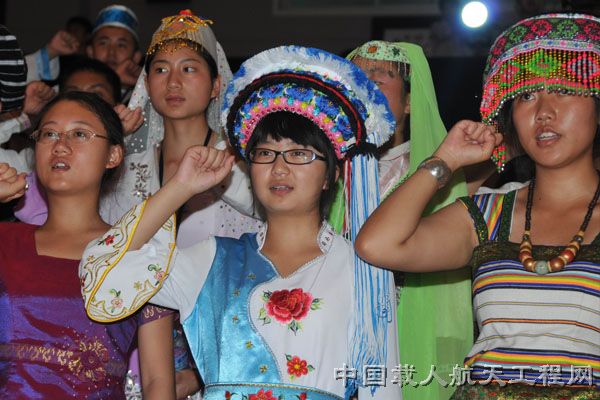 开营仪式是航天员体验营的第一个精彩环节,7月20日下午,来自45个民族的优秀青少年代表与航天员共聚北京航天城,启动为期4天的“航天体验之旅”。开营仪式上,有嘉宾致辞、各民族营员表演、营员代表接受营旗和营员入营宣誓等精彩内容。(摄影:张智慧)